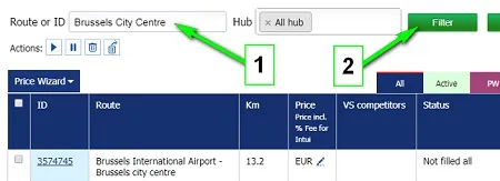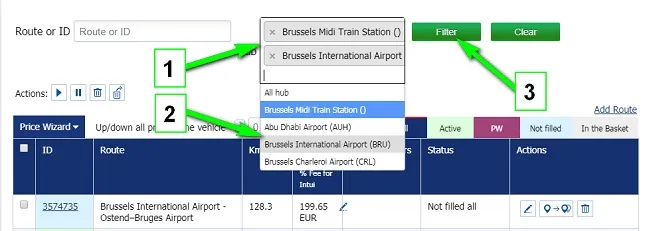 Use a special filter, to work with a group of routes with one or more transport hubs. Select 1 or more transport hubs that you want to edit from the drop-down list. Click the button " Filter"