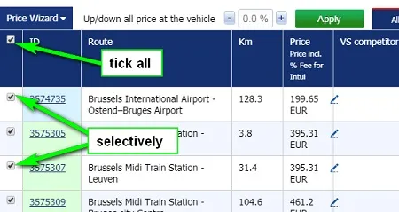 The prices will be changed only on routes that you select in the filter.