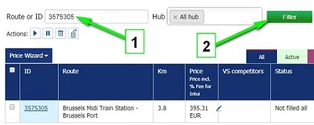 Just click the “Not filled” filter. There are all inactive routes in the filter. You can assign the prices to them or remove irrelevant routes to the basket.
