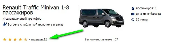 Шаг 8. Проверяйте, анализируйте отзывы. Клиенты видят ваш рейтинг и отзывы о Вашей компании рядом с вашим автомобилем и выбирают трансфер с хорошими отзывами