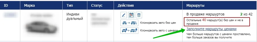 Шаг 2.Проставьте цены по всем маршрутам, которые вы обслуживаете