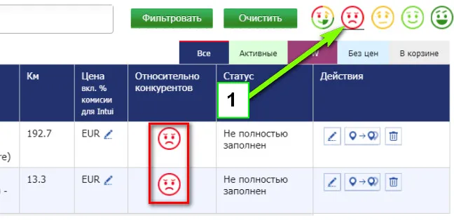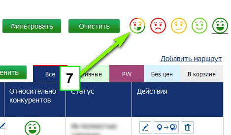 Выберите красный смайлик - для отображения списка маршрутов по которым у вас завышены цены.