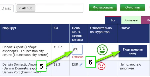 Отредактируйте вручную маршруты на листе. Нажмите на карандаш, введите новую цену и подтвердить цену.