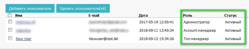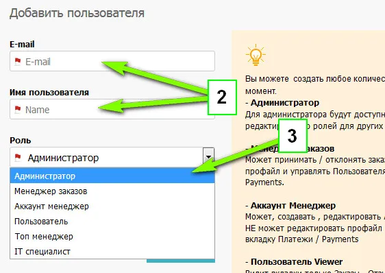 Вы можете выбирать Роли для пользователей, согласно их функционала